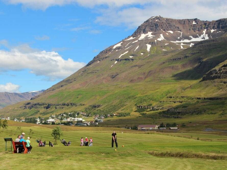 In the bottom of the fjord lies a 9-hole golf course, known for it's wide lanes and still weather.