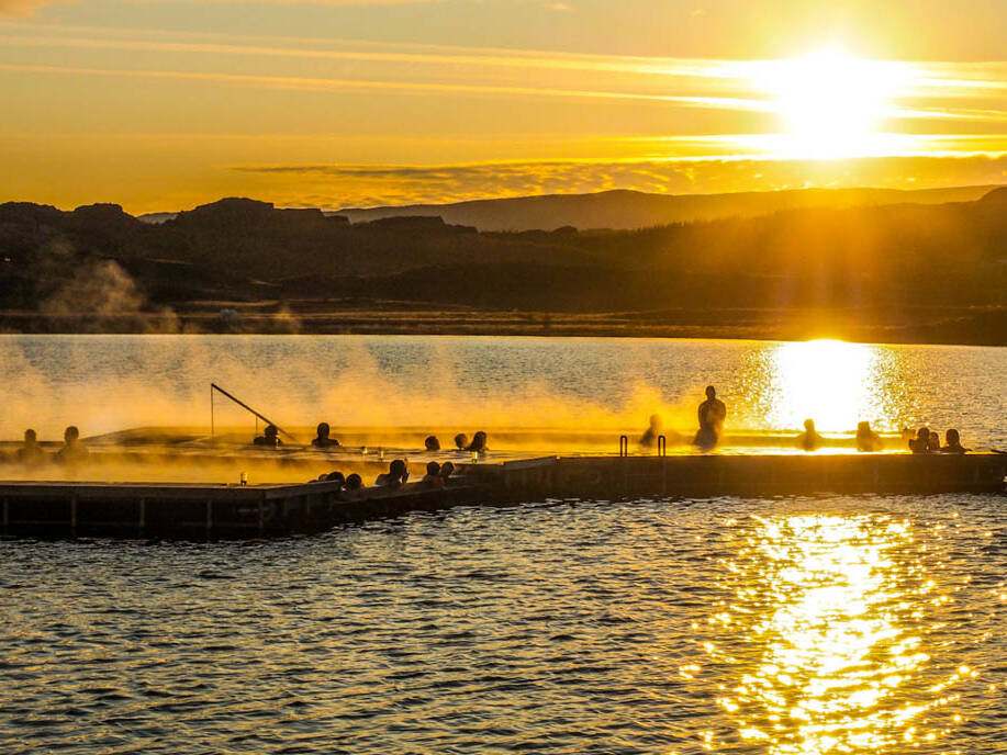 Half an hour away from Seyðisfjörður is Vök Nature Baths. Water is pump straight from the hot earth into floating pools and tubs in a middle of a lake. Absolutely worth the visit!